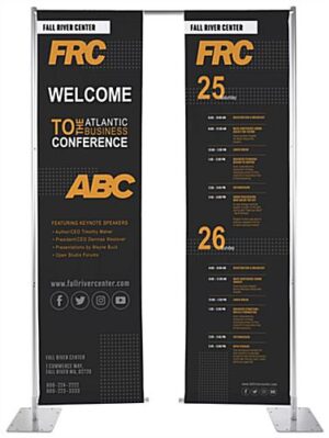 This custom replacement banner for DUALBNRST9DSCP makes it easy to keep your marketing messages fresh as they change throughout the year. Printed on .12mm weather-resistant polyester, you will be pleased with the bright full-color dye sublimation printing that can be used inside or outside. The 3″ pole-pockets at the top and bottom of the flag make for easy frame application. This custom replacement banner for DUALBNRST9DSCP is a wonderful way to create impactful advertisements that will grab passersby’s attention effortlessly!