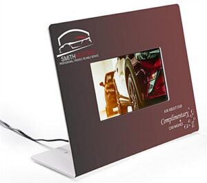 Coordinate your multimedia content with a custom replacement graphic for UVASH7DG small digital sign. Each white acrylic housing is designed to fit specifically around the associated 7” LCD display screen. This personalized panel is customized to your specific needs using full color digital printing. Update and refresh marketing efforts with this custom replacement graphic for UVASH7DG small digital sign.