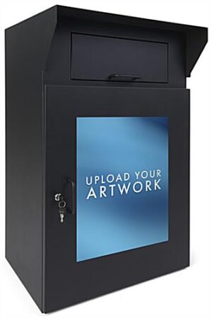 This custom stick-on graphic for FDHDBBF1 drop box is a great way to add a personalized touch to your book return, key exchange or mail/package bin. The adhesive PSA decal has a high-tack backing that is weather resistant and suitable for outdoor use. Each personalized sign offers full-color printing for a bright and vivid advertising display. This 14″w x 18″h custom stick-on graphic for FDHDBBF1 drop box is perfect for company logos, mail pickup times, customer instructions and more!