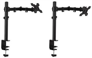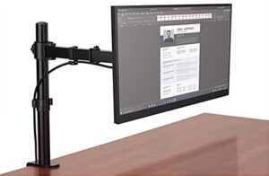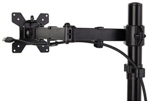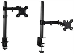 This articulating desktop monitor arm has a – 90/+85° tilting mechanism, 180° swivel, and easily rotates 360°, providing ease of use and many viewing angles in offices, labs, and schools. The lightweight flat-screen holder is compatible with 75mm x 75mm and 100mm x 100mm VESA devices, and is excellent for holding various screen sizes on countertops. Our tilting articulating desktop monitor arm can quickly attach to a countertop with the c-clamp or grommet attachment making the assembly process effortless. The adjustable height desk mount fits screens between 15-27 inches and can hold a max capacity of 22 lbs. This full motion unit has built-in cable management to keep cords organized and tucked away neatly. The flat-screen holder can easily clamp onto surfaces up to 3.94″ thick, making it compatible with a wide range of tabletops. Our full motion articulating desktop monitor arm with a c-clamp can easily be moved around, and is ideal in hybrid offices, medical spaces, classrooms, and labs.