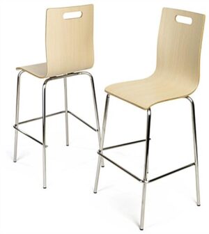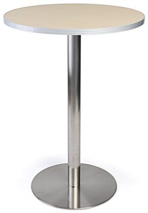 These bar height table and chairs are an excellent addition to your dining area furniture. With a tall, 30” round tabletop and two high back stools, this set comfortably serves two, standing or seated. Including a contemporary-styled table and chairs with a light-colored, bentwood design, this furniture adds a modern touch to any employee break room. Perfect for a dining area, the laminate finish is easy to clean and maintain. The table and chairs are affixed onto brushed stainless steel hardware that is both sturdy and attractive. This set comes in both light and dark finishes to suit many styles of room decor.