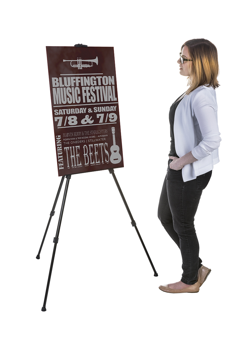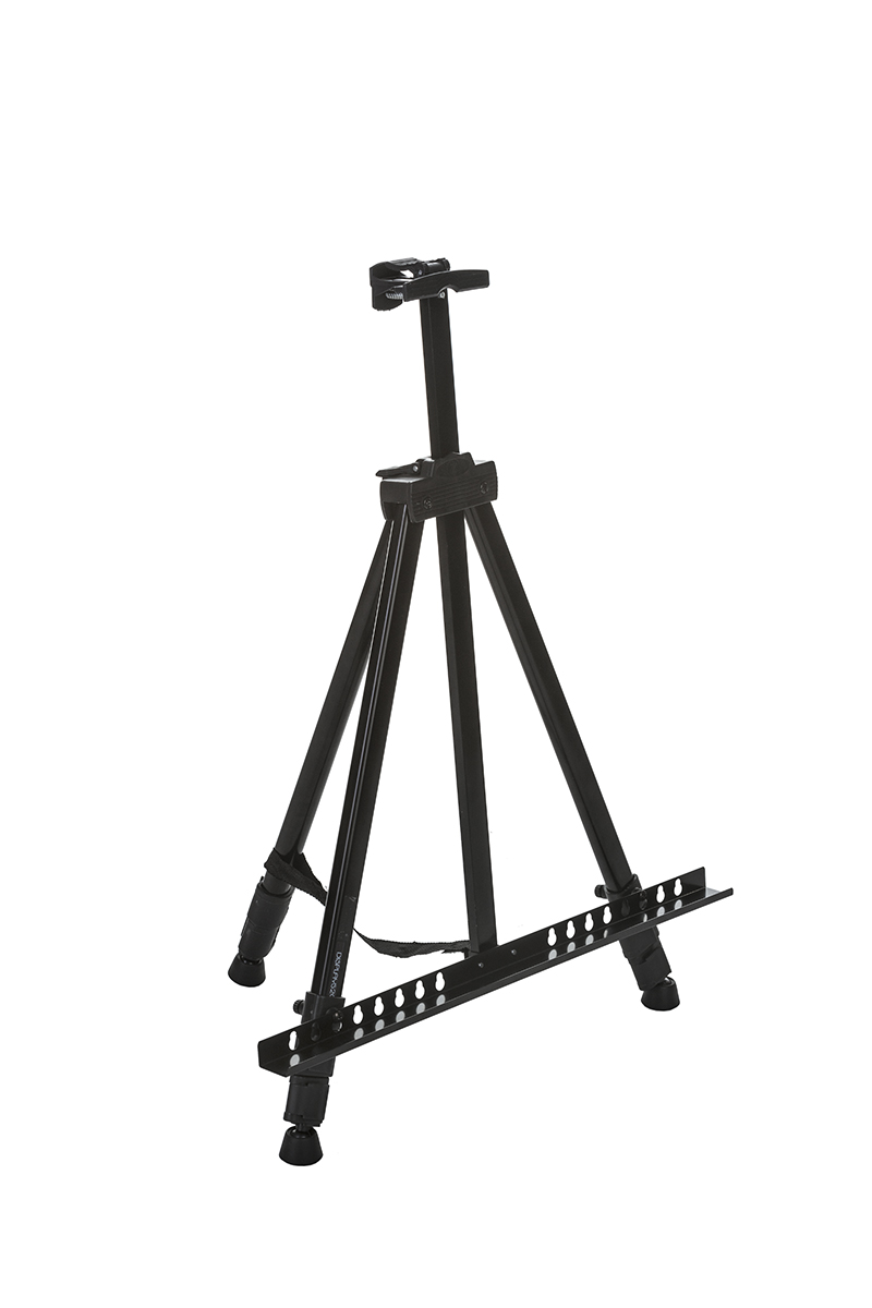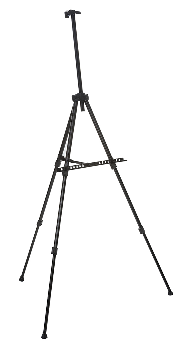 When it comes to performance, this black telescoping easel is about as flexible and versatile as it gets. Made with lightweight aluminum, this display piece collapses quickly and fits entirely into its portable nylon carrying case. With an adjustable tripod easel, the telescopic legs not only help with the packing process but give you the flexibility to customize the stand’s height. Extend this display to its maximum height for floor standing presentations or to its minimum for desks, counters, and tables. No matter how you position it, the stand’s non-skid legs are designed to keep it securely in place. Additionally, this easel features a detachable tray that can be repositioned to accommodate varying sizes of boards and artwork, or removed completely to hang material using the spring-loaded clamp. Coupled with its lightweight material and portable carrying case, an adjustable tripod offers freedom and room for creativity wherever your next project takes you.