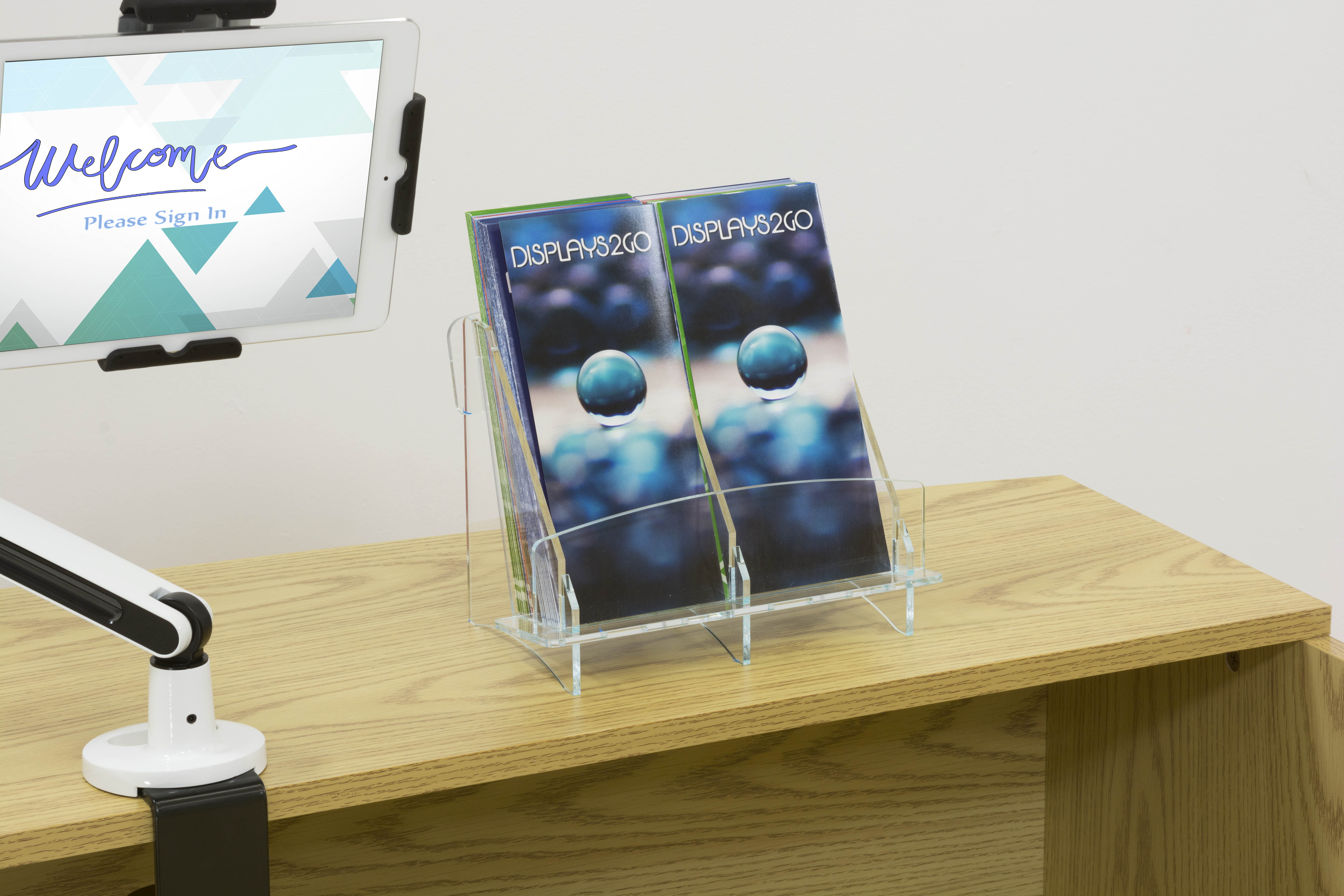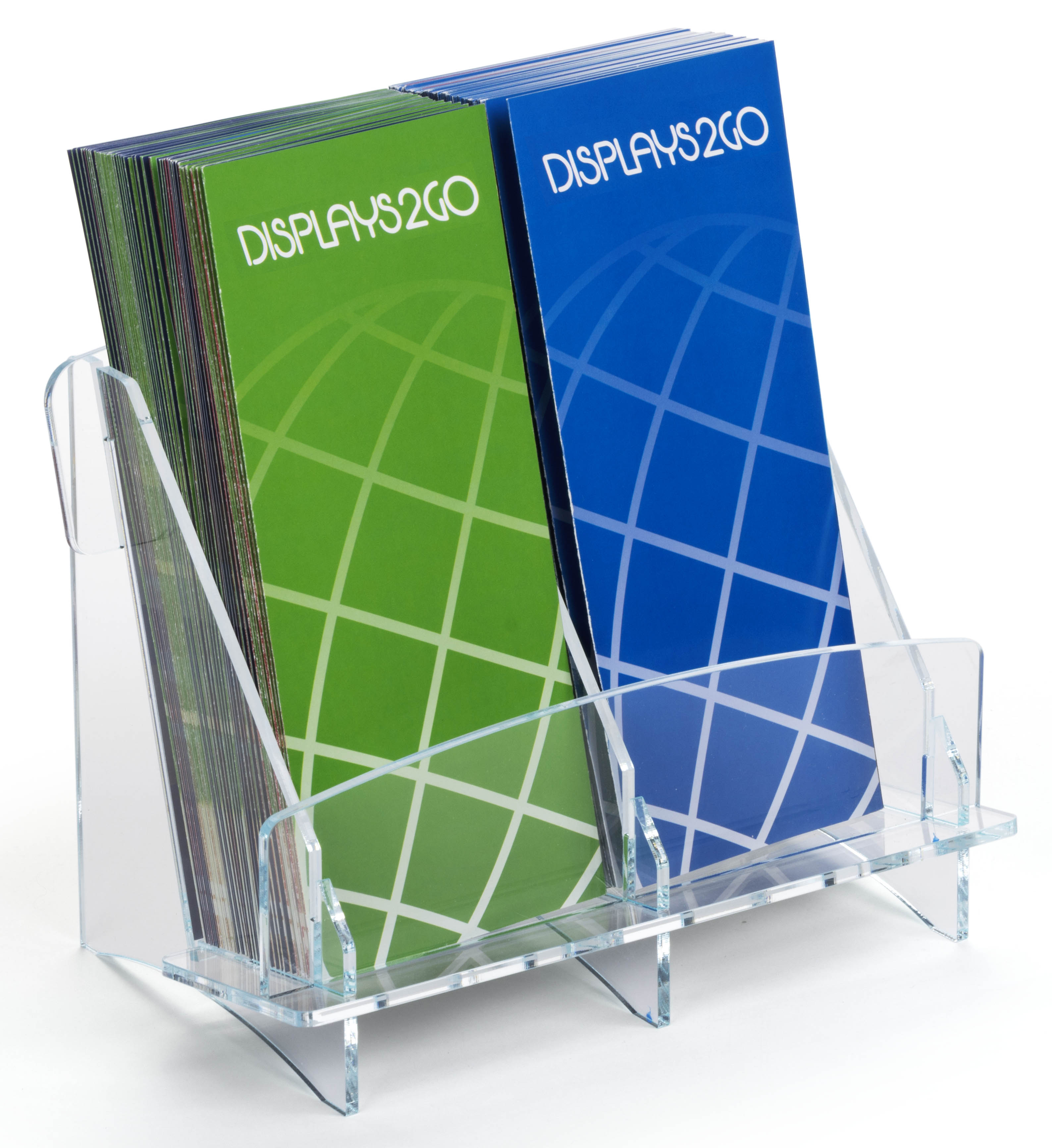 2-Pocket Brochure Holder, 4″w, Tabletop, Ships Flat – Clear