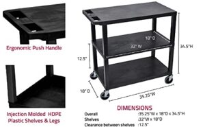 - HDPE (high-density polyethylene) shelves; PVC legs