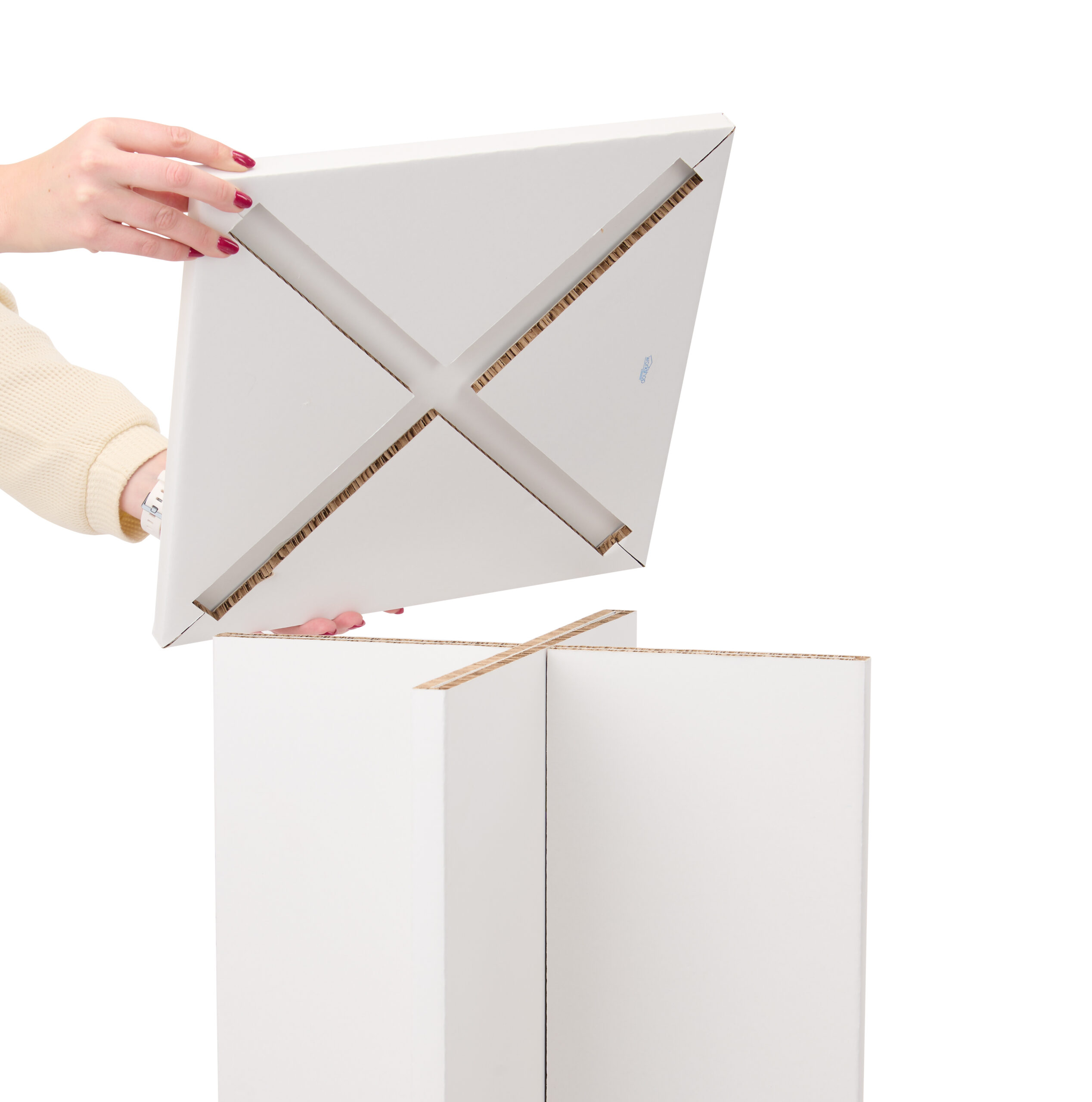 Make a more sustainable choice for your next store display or trade show event with this knockdown display pedestal! Made of FSC-certified Xanita board from post-consumer kraft paper waste, this pedestal is 100% recyclable and has a high crush-strength core for durability. The eco-friendly material has a sleek, silky white finish giving you a simple background palette for your displayed items. Set this plinth up in a matter of seconds with three simple steps; no tools or hardware needed. The flat-pack design is an added plus for easy transportation and storage. The durability of this knockdown display pedestal allows it to be used several times before disposal. Once it reaches the end of its lifecycle, the pedestal can be recycled.