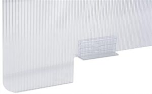 Use our countertop extended hygiene barrier to section off or divide high traffic areas to prevent the spread of aerosol-based viruses within banks, restaurants, checkout lines, and reception desk spaces. Each polycarbonate splash shield includes a set of two durable feet connectors and high-tack adhesive strips to keep this divider safely in place with two inches of overhang from its installation point. This countertop extended hygiene barrier with clear 0.236″ thick panel features a translucent corrugated design for an added layer of privacy. Conveniently clean this protective divider using warm soapy water or wipe down with a mild cleanser and micro-fiber cloth between customer visits. As an added benefit, each countertop extended hygiene barrier is easy to install without the use of any tools. Place this polycarbonate splash shield with clear panel within your space to ease the concerns of employees and customers while enforcing social distancing regulations.