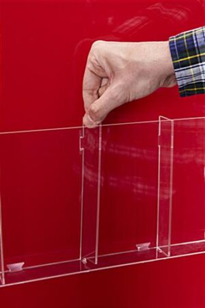 This acrylic mounted fire safety information station holds all the necessary information to lead guests to safety in the case of an emergency in your facility. The clear sign holders come in two sizes: large-format 17″ x 11″ for evacuation plans and 8.5″ x 11″ for other announcements and flyers to educate your visitors, students, or workers. Six brochure pockets allow for additional reading materials that can be easily resized with the adjustable dividers for larger publications. Steel standoffs keep your board secured to nearly any wall. Use this red mounted fire safety information station with pamphlet holders in your establishment for the protection of valued staff and patrons.