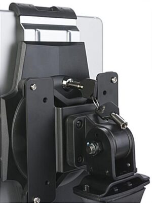 Create an interactive experience in your shop or store with this ereader floor stand which features a rotating and tilting enclosure. Each deluxe tablet holder has a sleek black finish over its aluminum body for a pleasing look in any environment. Place iPads or other devices into the adjustable floor stand with ease by pulling the enclosure supports open to fit a variety of sizes. Once your deluxe tablet has been clamped on each side lock the fixture with the included set of keys for security in your shop. You can easily maneuver the floor stand to a comfortable height for anyone. Additionally, each black device holder also rotates and tilts for a smoother user experience.