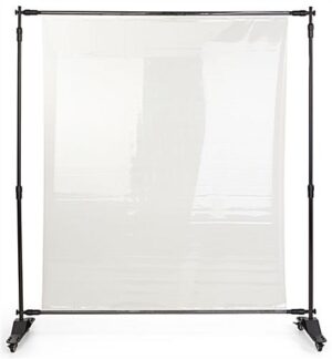 This clear room divider features a 4.6 ft x 6 ft tear-resistant PVC screen and an adjustable aluminum frame offering versatility in end-use from hightops and waiting rooms to classrooms and exhibit booths. The sneeze guard’s four directional wheels with locks allow this unit to be maneuvered with ease throughout your office space. Our portable clear room divider offers stability and longevity with a black oxide aluminum frame and a durable banner substrate. The transparent PVC screen makes for easy conversation between co-workers, patients and doctors, students and teachers, and more. Easily transport this unit to your next event with the convenient knock-down design and carrying case. Our clear room divider with wheels will be the perfect sneeze guard solution for offices, nail salons, beauty parlors, exhibit booths, and more!