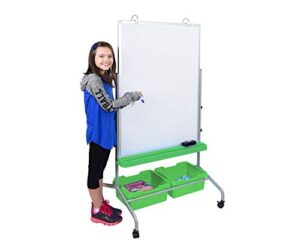 - Two durable plastic open bins hold supplies while handles allow for easy toting. Chart hooks display easel paper pads, pocket charts and posters.