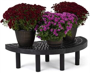 Our single-level half-round endcap display is a great way to entice traffic flow into aisles while taking advantage of smaller spaces within any retail environment. Each curved outdoor garden center fixture provides customers with a comfortable 180-degree shopping experience, perfect for showcasing all types of live goods, gardening tools, and general merchandise. Constructed of heavy-duty recycled plastic in a matte black finish, this single level endcap display with 48″ wide display space can withstand up to a total of 400 pounds. Ideal for home improvement retailers, grocery stores, and gas stations, place this grid top bench at the end of aisles to draw your customer’s eyes and maximize the visibility of your best merchandise. This single level half round display with modular design is easy to assemble, disassemble, and transport inside or outside your establishment due to its lightweight construction and tool-free assembly. Use this curved grid top bench alone against walls in tight places, or pair with our matching garden center fixtures to create a compelling showcase with ease!