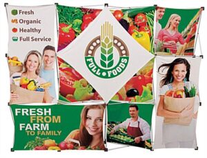 This trade show pop up makes a statement with its 3D design and beautiful dye-sublimation artwork! This GeoMetrix™ kit attract visitors to your booth with 10 custom tension-fabric panels that can feature logos, brand messaging, and product promotion to engage and educate potential customers. The printed shapes arrive attached to the floor standing trade show pop up, which expands for a smooth assembly experience. Despite being lightweight, two-person assembly is encouraged due to the elastic nature of the tension-fabric frame. If desired, the 6 square, 3 rectangular, and 1 diamond unbutton from the portable trade show pop up and are interchangeable to create new configurations for the perfect promotion. This 3D GeoMetrix™ custom-printed kit is perfect as a backdrop at just under 10’ wide to fit in a standard booth size. When the expo is over, the dye-sublimation artwork can be left on the lightweight frame when collapsed, minimizing time needed to pack up. Due to the stretch nature of the shapes, wrinkles will not set in and will pull tight to remove any folds when assembled. Slip the pop up into the included hard carrying case for easy transport and storage until the next event!