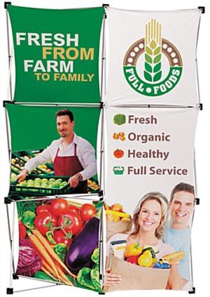 This trade show popup is a useful and affordable promotional tool for expos and conventions, shipping fully assembled with dye-sublimation fabric graphics buttoned on for immediate use! The GeoMetrix™ display provides an attractive backdrop for any booth with its impressive 91.5” height and lightweight aluminum frame. Featuring a unique 3D design, the portable popup includes 5 custom-printed fabric panels in 2 different shapes. Each geometric stand offers a highly visible advertisement at an affordable price, with each graphic custom-printed to customer specifications. Simply use the downloadable template to create and upload artwork for this floor standing popup. Each of the different shapes are printed with dye-sublimation for a rich color that will keep their great look use after use. The 4 square and rectangular fabric panels can be installed interchangeably on the GeoMetrix™ frame, allowing you to install in any configuration to create a custom promotion. Despite its impressive size, the popup has a compact and lightweight design to grab the eye of passing crowds without monopolizing valuable booth space. A travel case is included that offers plenty of internal space to store both the geometric display and additional accessories.