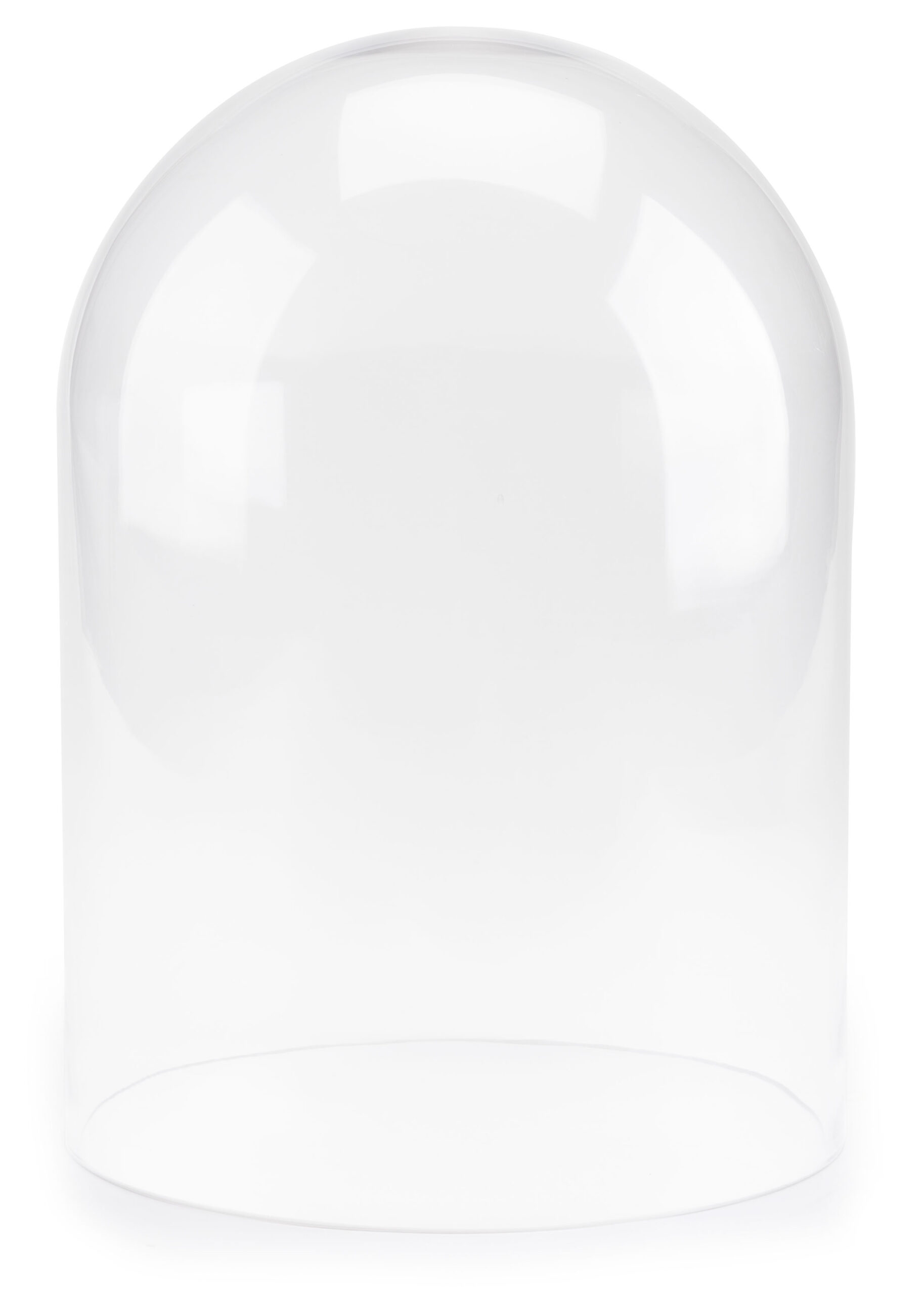 This baseless small glass bell jar blends seamlessly into any merchandising environment. Showcase collectibles, store merchandise, small plants, and more beneath this decorative clear cloche dome. The small glass bell jar’s lift-off top allows for an effortless update to any display as your interests change. This enclosed baseless dome keeps valued items protected from harmful elements like dust, dirt, and grease, in high-traffic areas. Each clear cloche has the capability of securely housing contents of up to 8.5″ wide x 13.5″ tall. Highlight your displayed collectibles without sacrificing appearance with our frameless small glass bell jar today!