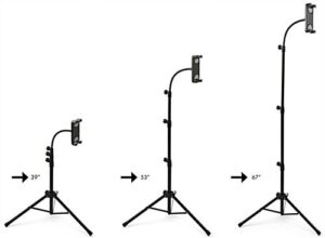 Gooseneck Tripod Tablet Floor Stand w/ Adjustable Height and 360° Rotation- Black