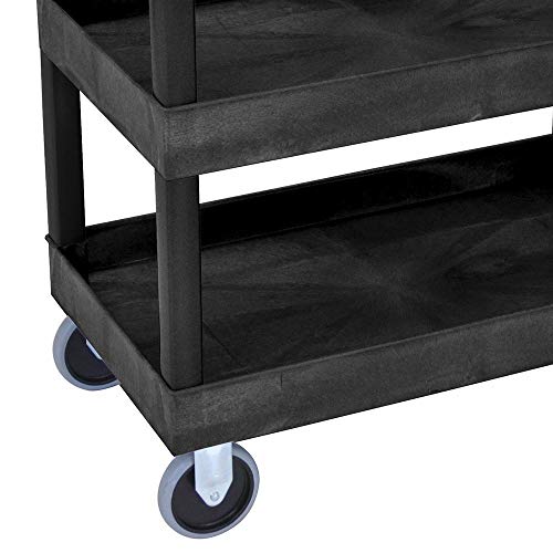 - Includes three 2.5″ deep tub shelves. Ergonomic push handle molded into top shelf. Maximum weight capacity of 500 lbs
