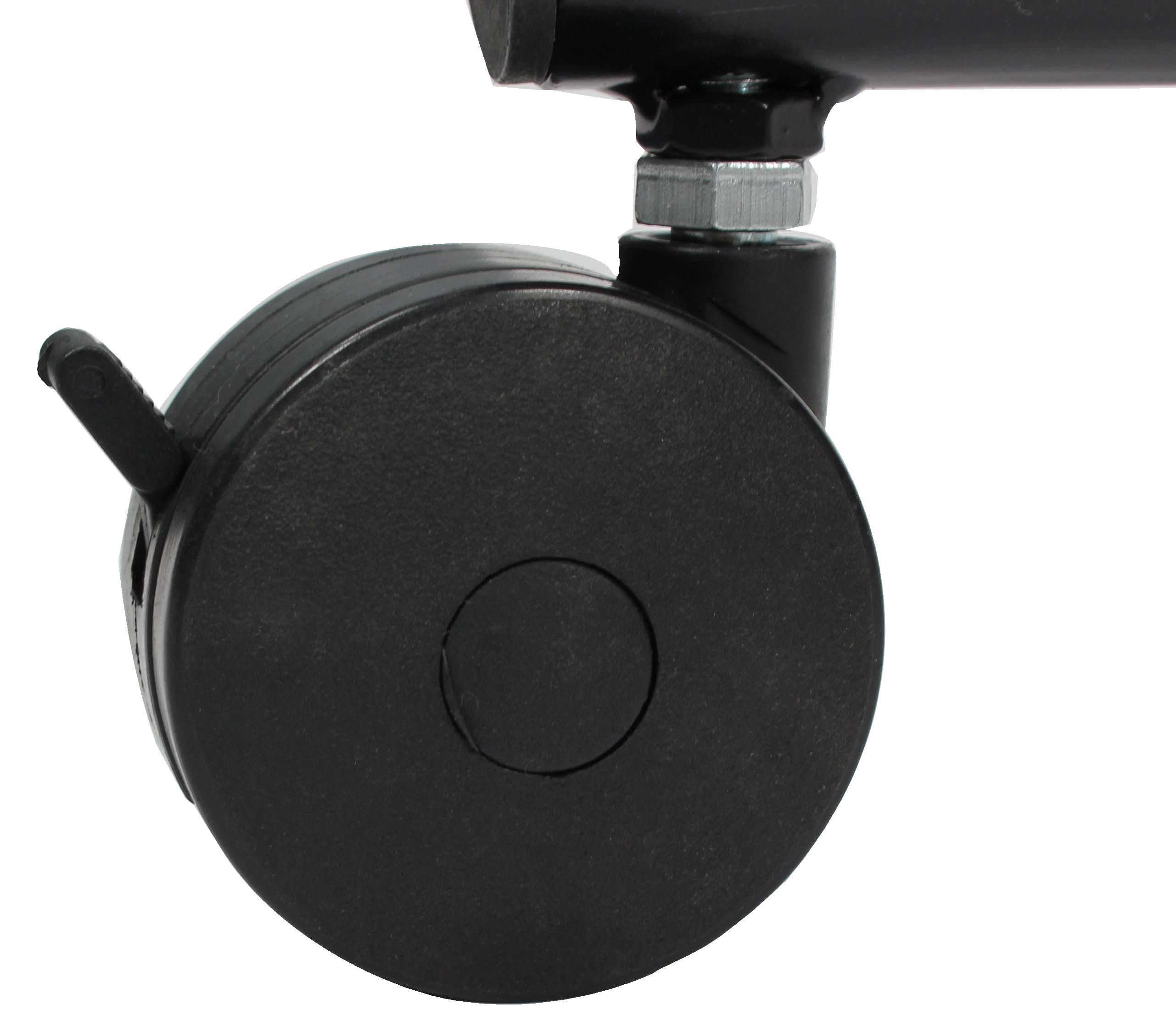 This mobile laptop desk, known as a computer display, is ideal for using in any office or residential setting. It is easy to change the height, making it suitable for sitting down and typing or standing and giving a presentation. The large surface area measures 28″ x 18″, providing ample workspace. This ergonomic desk is equipped with four wheels for easy maneuvering, and two of the wheels have locking casters for stability. Additionally, the desk can tilt to the ideal angle for presenting or working. It features a lip at the bottom of each surface to prevent items from sliding off. Constructed from sturdy steel with a matte black finish, this desk is both durable and stylish. The surface board is made from MDF and complements any setting. Whether used in a professional office or at home, this mobile laptop desk offers height adjustability and a tilting design for ergonomic efficiency. It allows for increased productivity and efficient utilization of space.