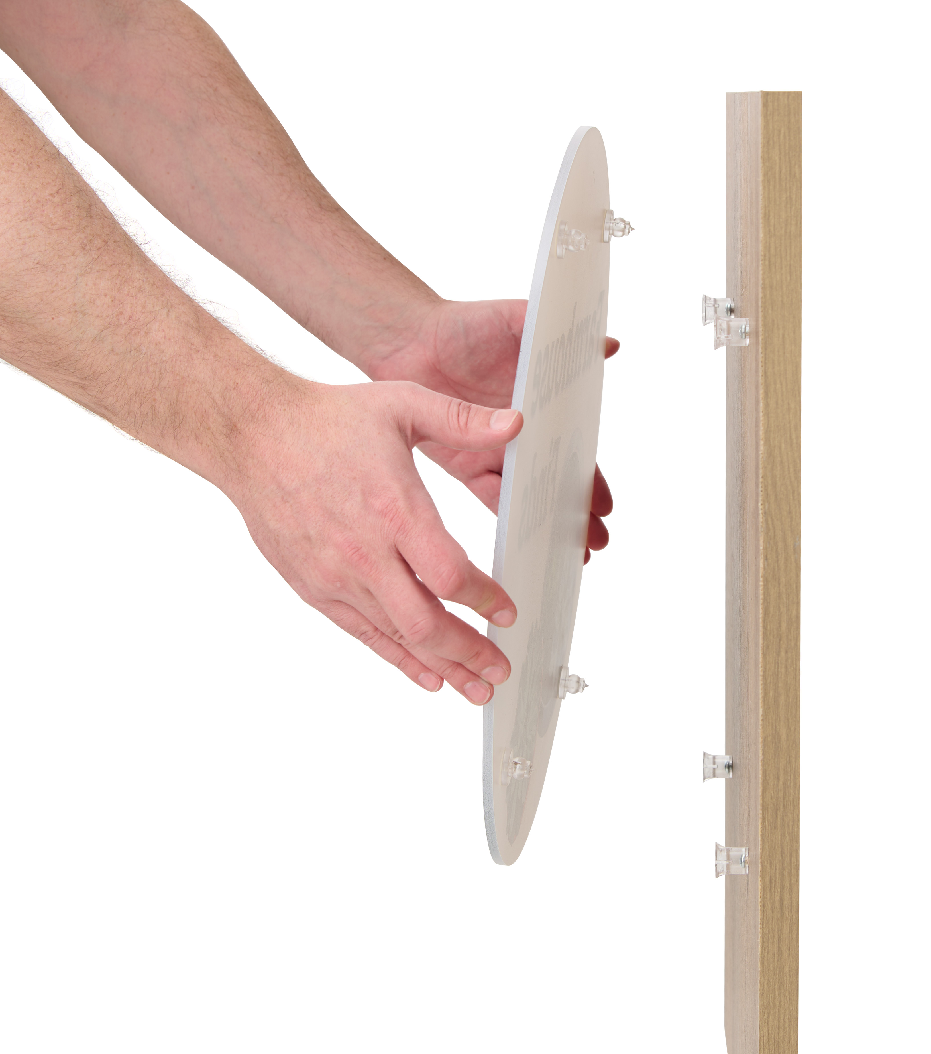 These invisible standoffs are an excellent mounting hardware option for any signage from thick acrylic to lightweight foam board. This clear hardware will not obscure mounted graphics or artwork. These plastic invisible standoffs are sold in quantities of 12 with the proper mounting hardware and adhesive included for easy assembly. With a weight capacity of 75 lbs. per unit, you have the flexibility to use these hidden sign standoffs for a wide range of installation needs, from signage to modern floating shelves. The cap screws into the wall and the spike adheres to the substrate for a secure snapping mechanism, making setup and removal a breeze. These modern clear plastic hidden standoffs will quickly become your new favorite mounting hardware solution!