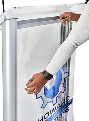Frosted Acrylic Light Up Podium with Logo Includes Digital UV Printed Graphics