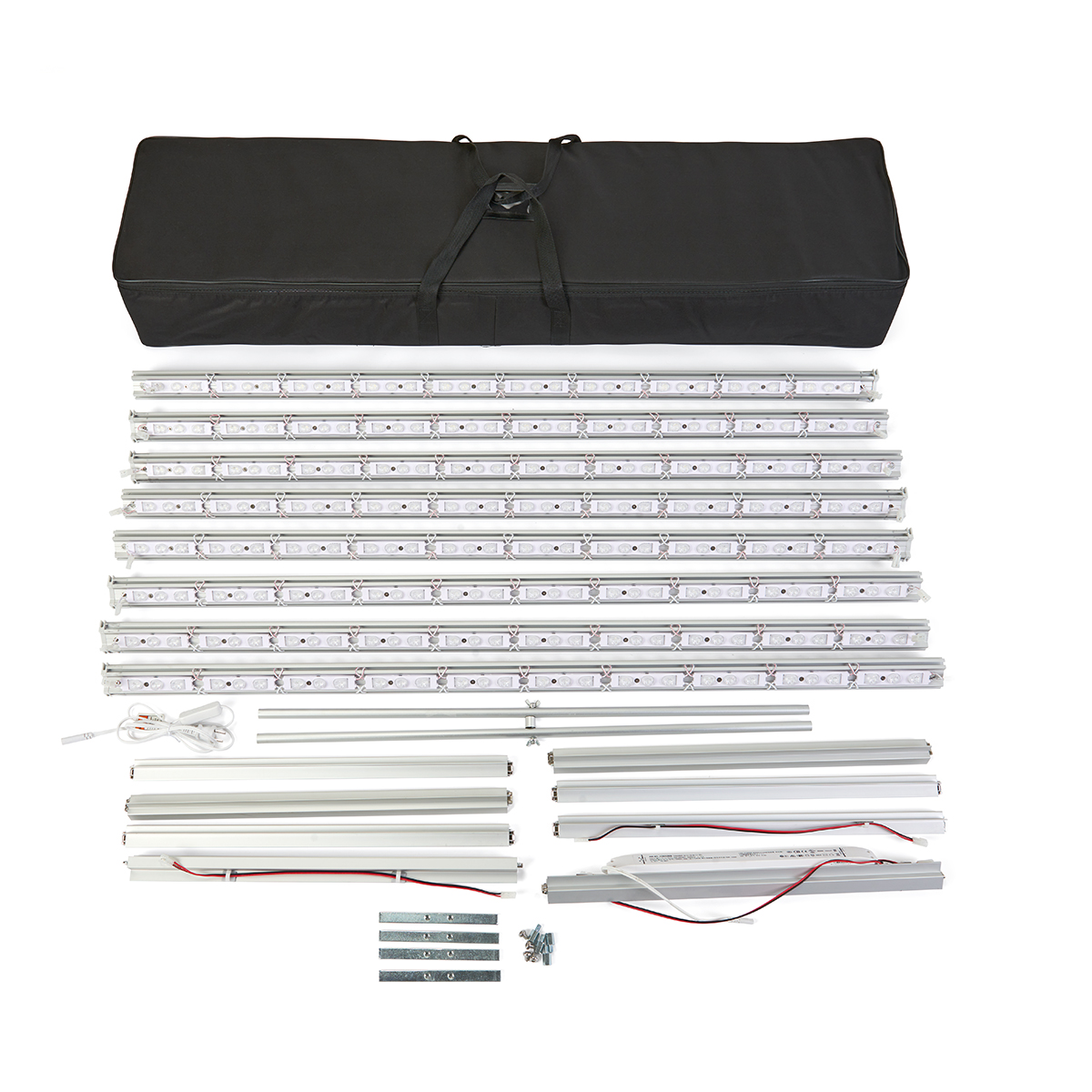 Light up the show with this 8’ illuminated square tower. This hardware only option allows you to use your existing SEG panels while only paying to replace the aluminum frame. With 240 LED bulbs lit in the edges of the frame, you will be outshining the competition. A UL adaptor comes with the LED square tower hardware, as does a carrying bag for easy storage and transportation.