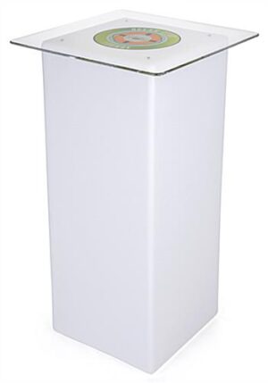 The logo LED highboy table will light up your restaurant or special event with brilliant glowing color. A custom printed acrylic top makes this piece unique branded furniture that will showcase your business graphics in a sleek modern design. This logo LED table has a IP54 water and dirt resistance rating so it can withstand a splash of liquid or brush of sand. And the included remote control lets you chose from 16 different colors, 4 color-change effects and brightness options. When fully charged, this piece will light up a lounge or event with for 10-12 hours. An indoor/outdoor logo LED highboy table is the perfect custom branded solution for an outdoor pub – place several on a patio for a contemporary look.
