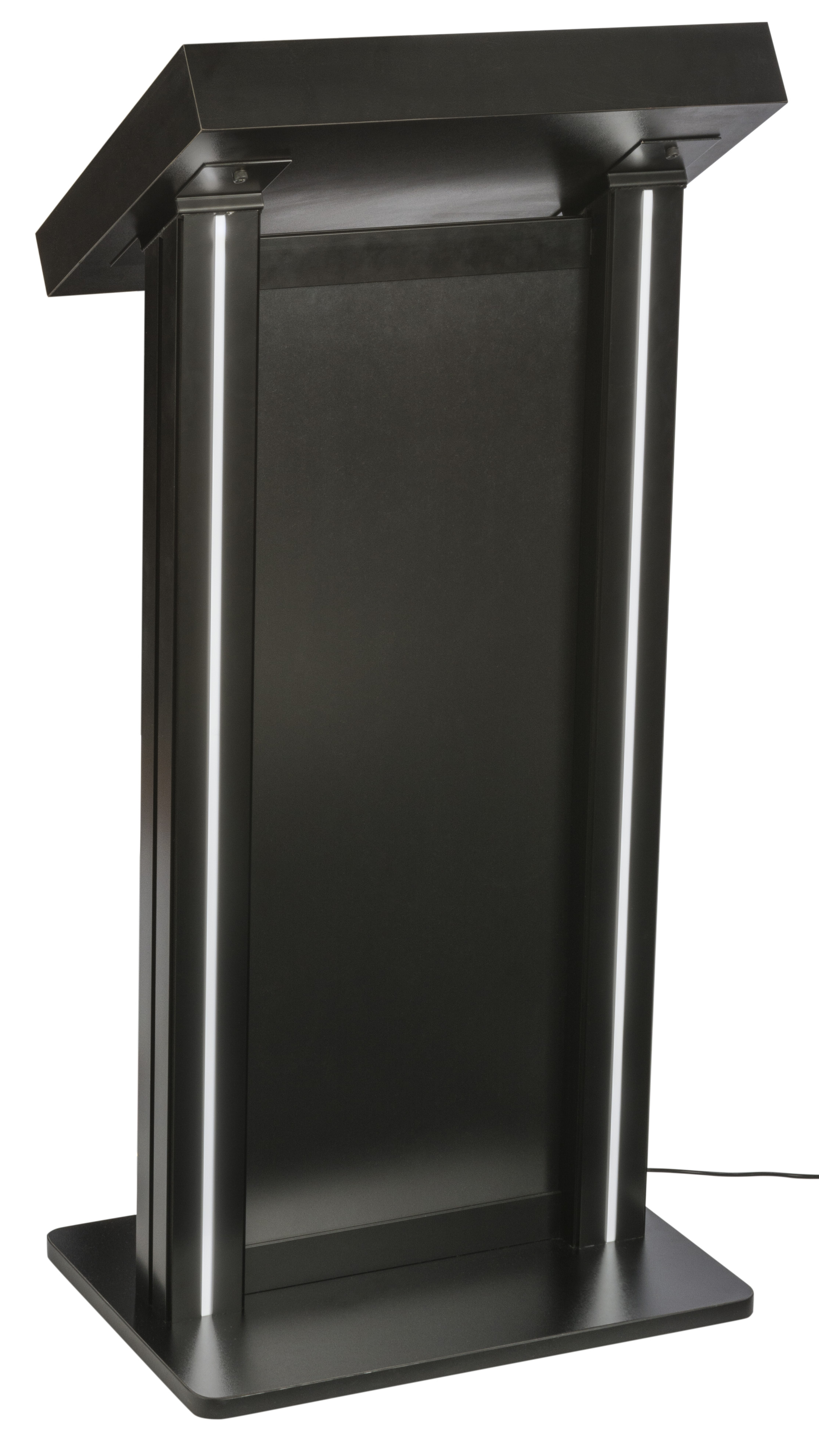 Illuminated Podium for Floor, Side Lights, Pull-Out Drawer – Black