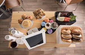 iPad 12.9” Counter Stand, Acrylic Enclosure, Gooseneck Arm – White