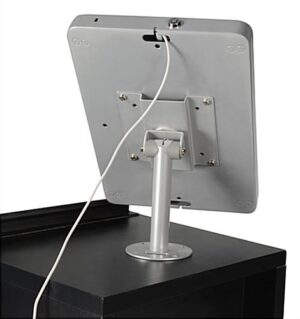 An iPad desktop stand, with locking enclosure, will keep the device safe in a public area. All desk mounts include a lock, located on the bottom of the case, and a key. Each security enclosure, iPad desktop stand allows patrons the opportunity to interact with a business’ products and services. The desk mounts are innovative point of purchase tools to place in a shopping environment. This iPad desktop stand, that is an Apple tablet accessory, is affordable and a quality digital signage fixture!