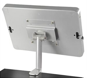 Each iPad desk clamp that fits generations 2, 3, 4 and Air 1 & 2, has a fully rotating case. These secure mounts are designed with a locking enclosure. Each countertop accessory, iPad desk holder provides security in a public location. The secure mounts provide an opportunity for customers to interact with during their shopping trip. An iPad desk holder, with locking enclosure, is the ideal advertising tool for a variety of businesses. These countertop accessories can be positioned at the ideal viewing angle for guests and visitors. An iPad desk holder, also known as a secure mount, is designed to keep the device secure in a high traffic area!