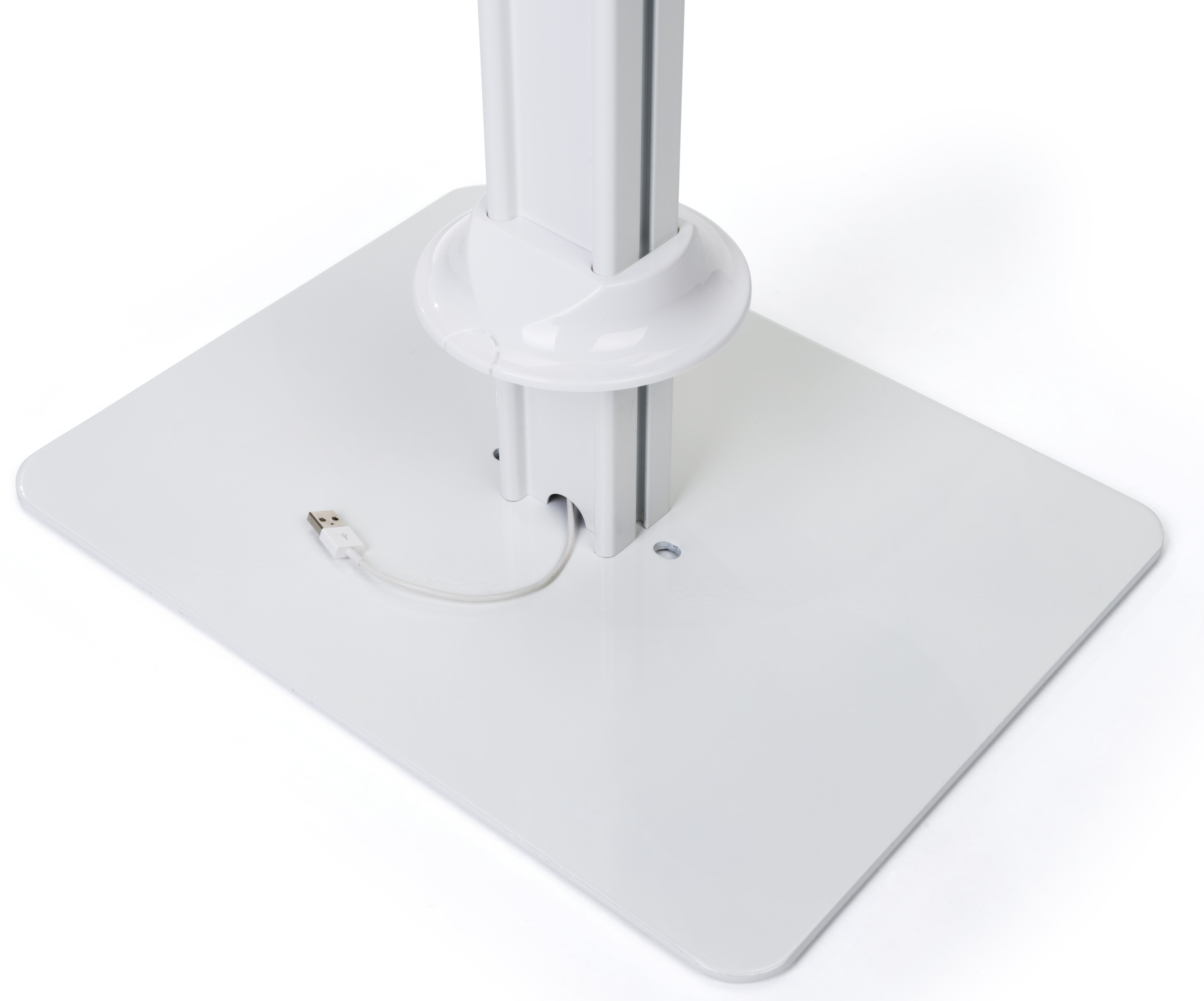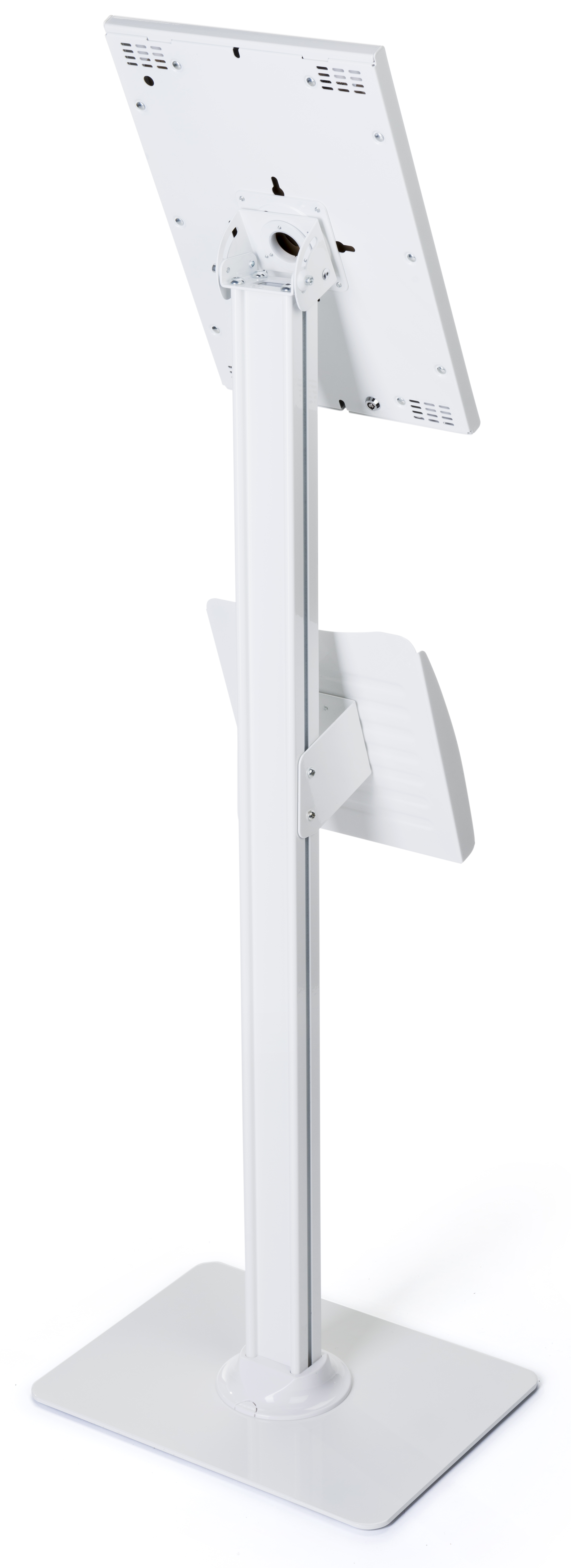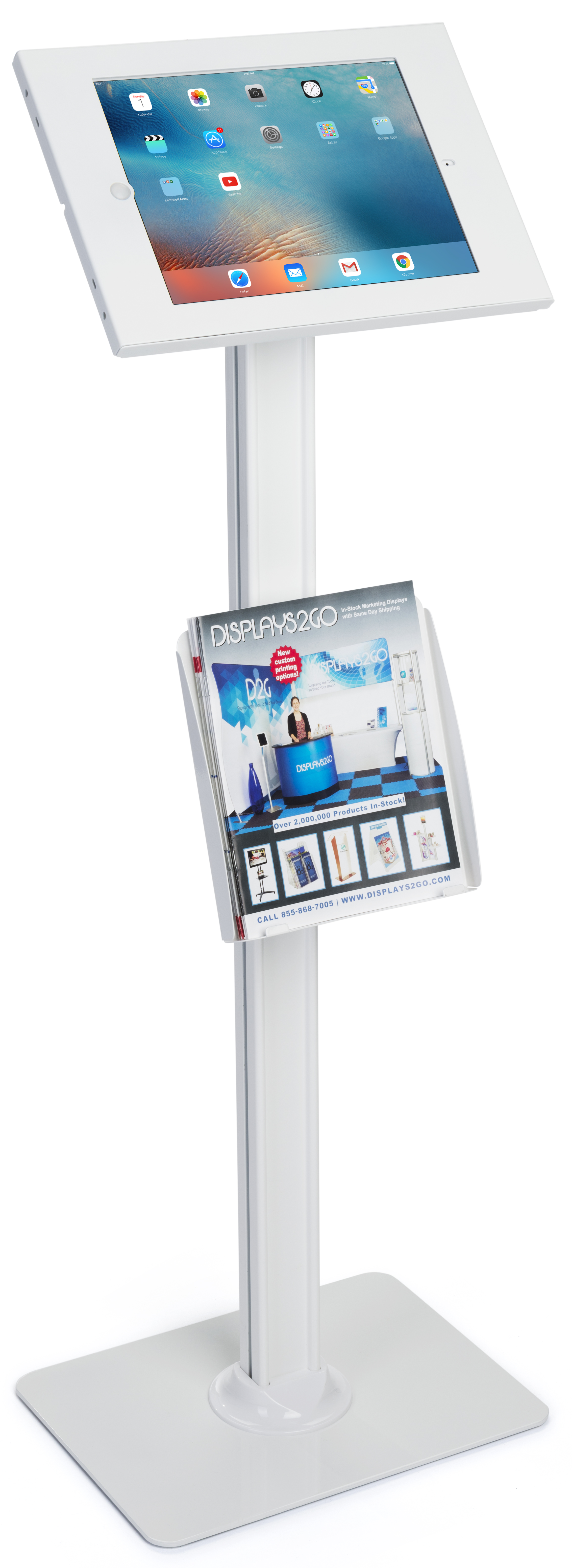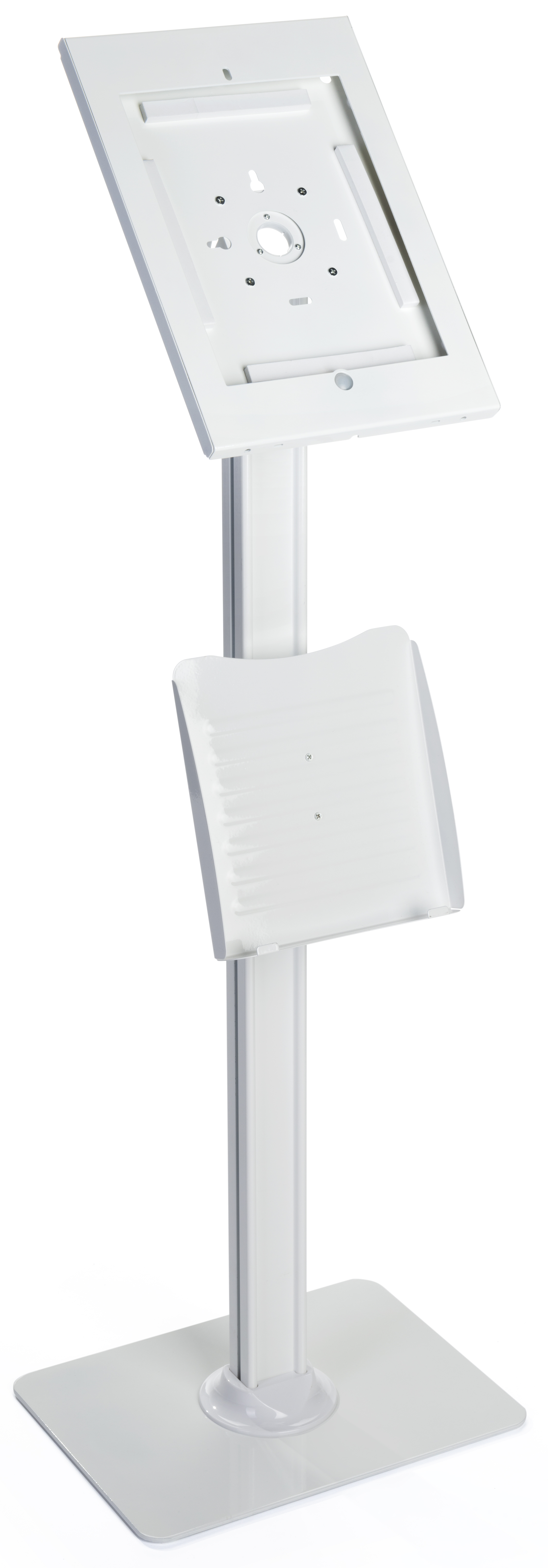 iPad Floor Stand with Lock & Literaure Pocket, Home Button Exposed – White