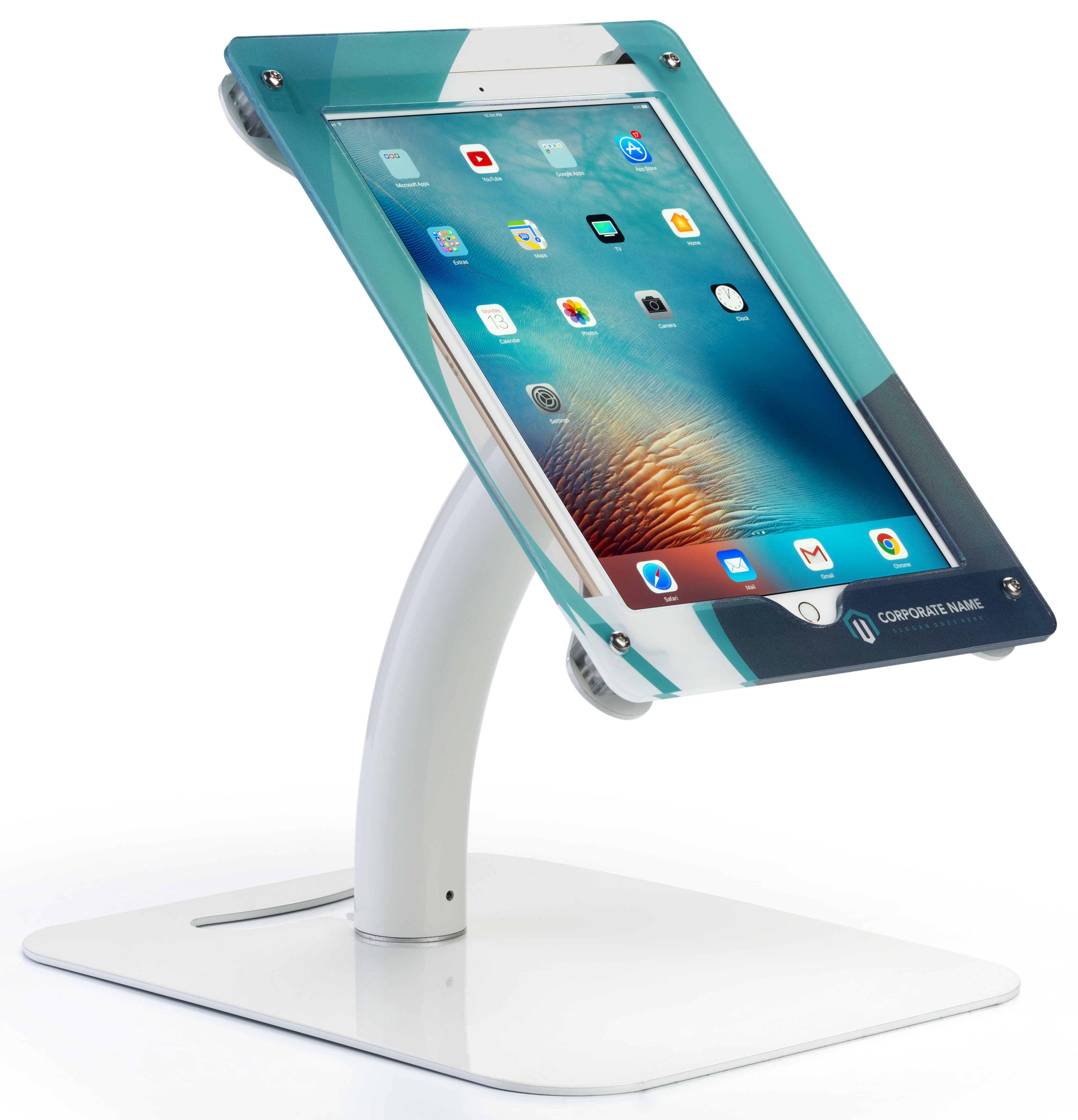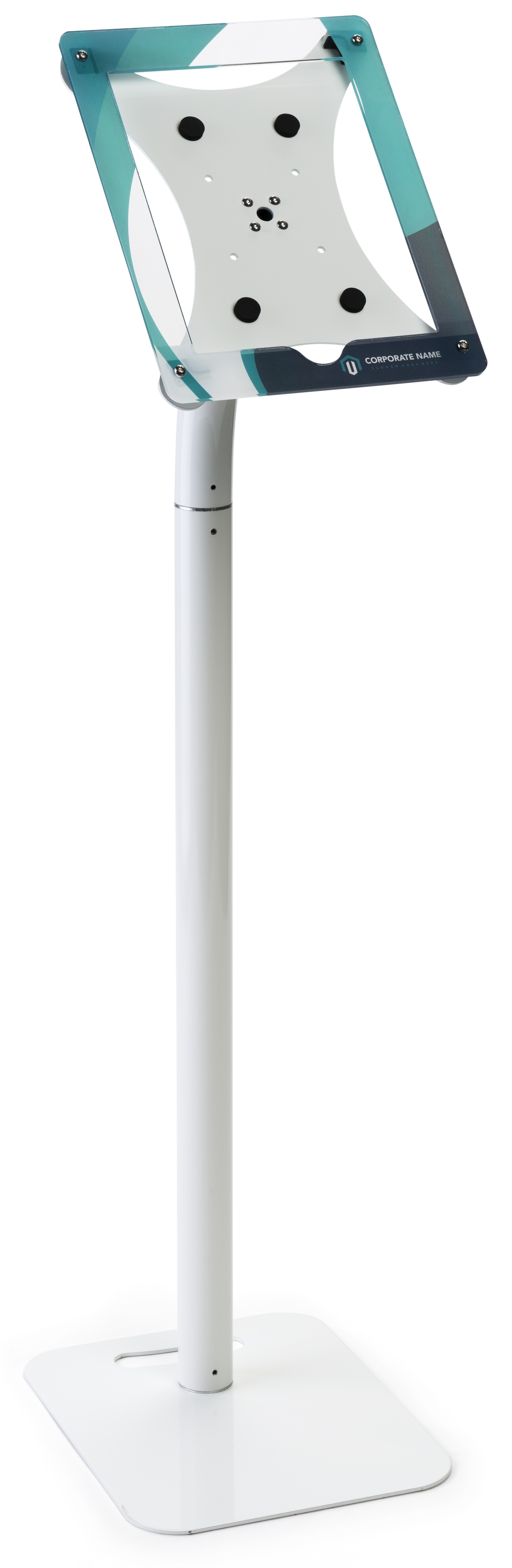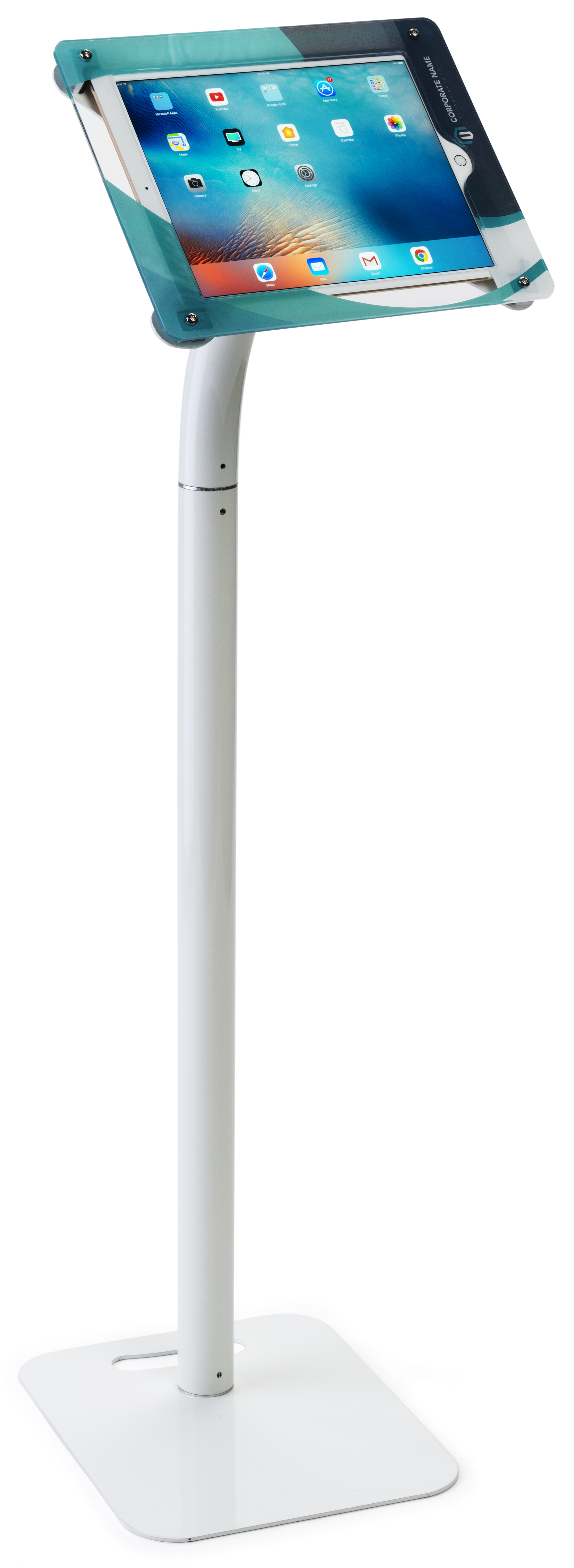 iPad Pro Stand for Floor or Countertop, Custom Enclosure Graphics, Lockable – White