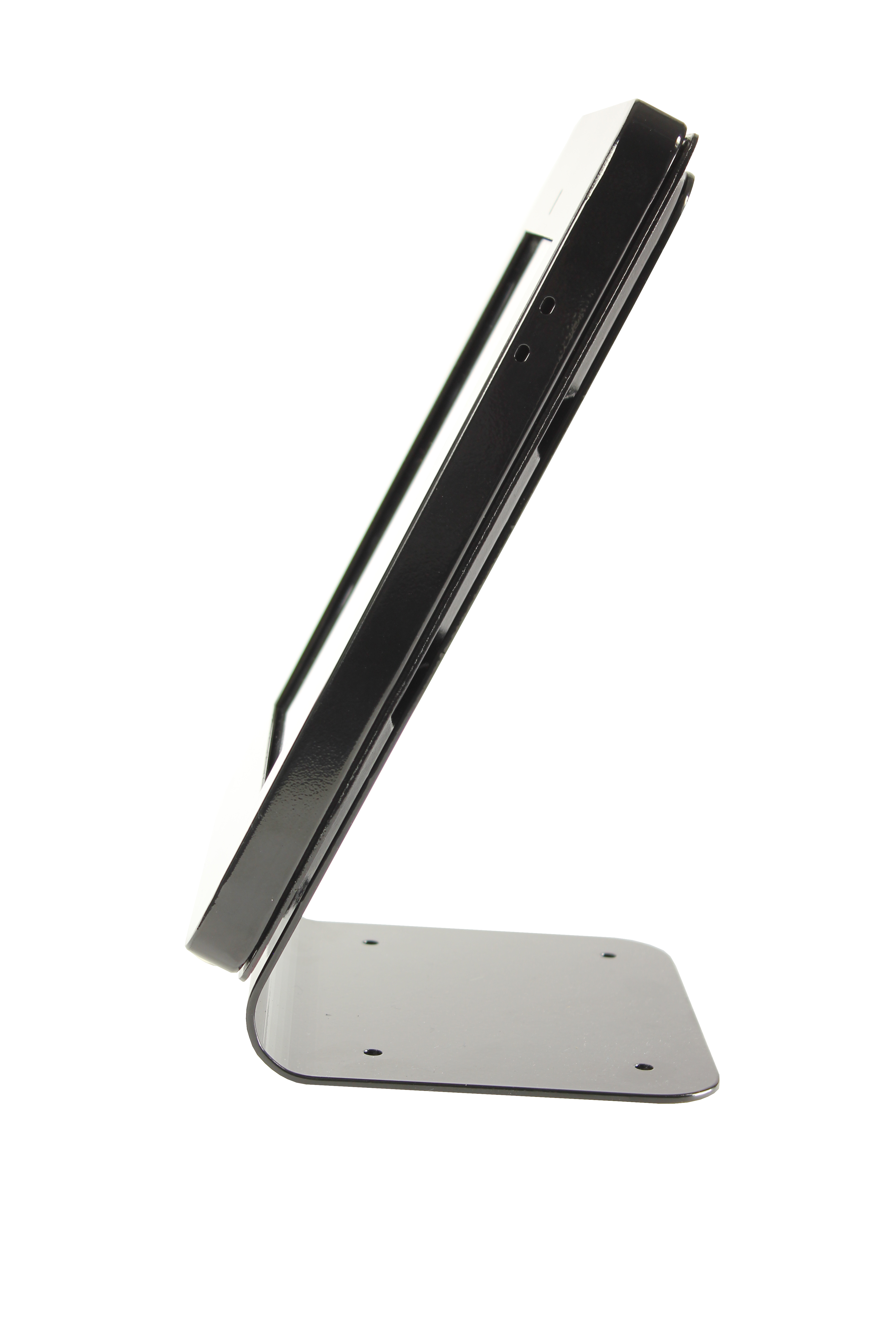 Security is an important factor when considering different iPad stands that do not rotate. However, businesses sometimes make the mistake of sacrificing style and some functionality in exchange for security. This is an unnecessary sacrifice, as these metal iPad stands have many security features without sacrificing style or functionality. A gloss black, powder-coated finish gives the steel body of the enclosure a very sleek appearance. The Apple device mount, iPad stands that have a 25° tilt, hold tablet devices at an angle that allows customers to easily interact with the tablet.