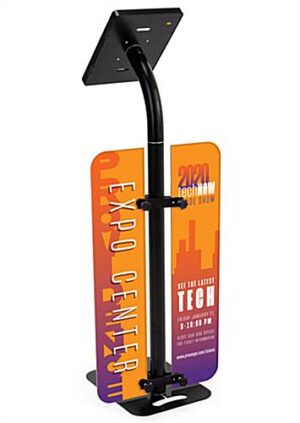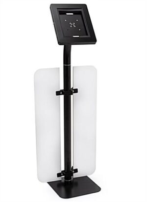 iPad Tablet Floor Stand w/ Custom Printed Foam Boards, Locking Enclosure – Black