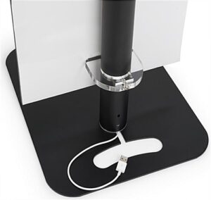 Stand out from the crowd with this custom branded tablet security kiosk featuring a 60” tall banner with personalized graphics. The iPad floor stand is construction of an aluminum and steel build and finished with a black coating for a modern design. Lock slots in two spots on the tamper-proof branded tablet security kiosk along with a locking enclosure provide peace of mind when leaving your device behind. For easy personalization simply download the templates provided below and complete with a design of your choosing. A rotating iPad floor stand such as this makes a great companion to hotels, restaurants, malls, and trade show events. For added convenience, when the graphic is not in use, each fixture can transform to a countertop height. Use this tablet security kiosk to ensure your company gets the recognition it deserves!
