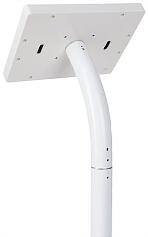 Create an interactive exhibit for your guests with this iPad foam board banner display. Personalize the included 12”w x 30”h sign with your own custom graphics to attract patrons to the tablet holder. The white iPad banner display features a hybrid design that allows the unit to be used as a floor standing model or a tabletop kiosk should you decide not to use the sign. Constructed of steel and aluminum, this exhibit is perfect to use as a durable retail kiosk, information stand or public sign-up station. Complete with custom graphics on the sign, a Kensington security slot and a cable integration system, this floor standing unit is an excellent choice for retail establishments. The iPad banner display is a great method of interacting with and engaging your guests.