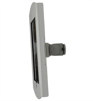 This iPad wall bracket with a silver enclosure is made of steel. The durable construction is ideal for commercial use. Each iPad wall bracket, called a tablet mount, is used in retail stores, food venues, hotel lobbies, photo studios, internet cafes and more. These Apple® device accessories are designed with many great features for business use. The iPad wall bracket tilts and rotates, has camera holes for skyping, and an open slot on the bottom for the charging cord. Each tilting iPad wall bracket can rotate all the way around to go from portrait to landscape orientation. The tablet can also tilt as far up and as far down and the walls allow. This Apple® device mount is an iPad wall bracket that locks to keep the touchscreen player free from theft. Tablet accessories have a push lock for ease of use. One set of keys is included with each iPad wall bracket for a trusted associate. These touchscreen accessories are made for to fit a variety of Apple® devices.
