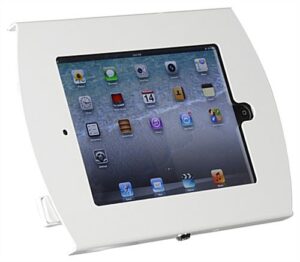 iPad Wall Mount, Locking Enclosure w/ Exposed Home, CC Reader Compatible – White