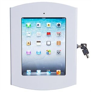 iPad Wall Mount, Locking Enclosure w/ Hidden Home, CC Reader Compatible- White