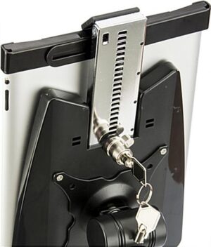 The iPad wall mount holder with an optional locking bracket makes for a great commercial tablet stand! Simply affix the unit to a surface with the included hardware and tool kit. Once mounted, the secure wall mount holder can hold a variety of iPads & most 7”-10” tablets by using a spring system that stretches between 6” and 10”. The non-defined edges of the bracket can hold touch screens in portrait or landscape orientation. Also, the wall mount holder has a secure enclosure that tilts for optimal viewing angles! The exposed home button of the Apple® tablet stand allows for full function and use of the device’s software and applications.