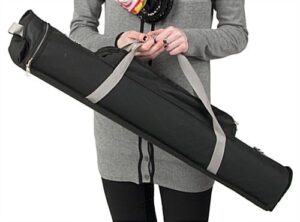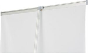 This retail banner stand has an L-shaped design for added stability. The floor-standing fixture measures 80.25 inches tall and is sold with a custom-printed vinyl banner that measures 23.5 x 78.75 inches. This retail banner stand is designed with portability in mind. The 3-piece fixture is easy to set up and does not require the use of any tools or any additional hardware. Simply connect the aluminum post to the base and the slide the vinyl graphic into the banner rails. Attach the rails to the pole, which will pull the graphic taut. This retail banner stand is even equipped with a black canvas carry bag for storage in-between use.