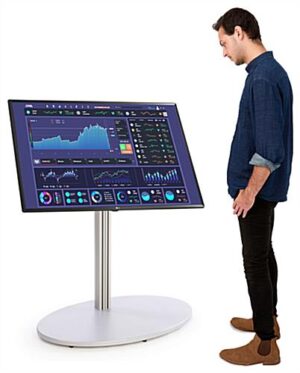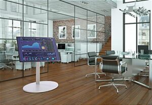 This all-in-one digital signage has a large 55″ commercial monitor with LG SuperSign software built-in, providing a wide variety of templates to create compelling advertising content. With a 4K UHD resolution, your videos, slideshows, advertisements, and other marketing materials will have a vivid and clear picture that will capture guests’ attention effortlessly. Each LG SuperSign all-in-one digital signage is 42″ tall with a tilting mounting design to angle the television screen to your specific needs. The base is reinforced with rubber feet to give the structure traction and prevent any scratches on the floor, making it perfect for high traffic areas. This commercial TV stand combo has Bluetooth and WiFi connectivity allowing you to easily connect to your computer or smartphone to play marketing videos, share media, and show advertisements. There are also USB, HDMI, and AV cables for easy access to your documents, making it great for museums, hospitals, corporate offices, and universities. This 4K UHD all-in-one digital signage is a modern advertising tool that will streamline your company’s marketing and advertising communications.