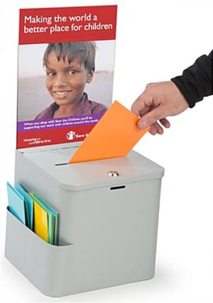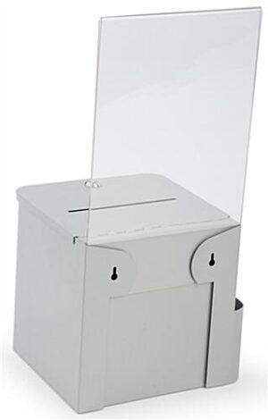 Silver Ballot Box with Sign Holder and Lockable Cover