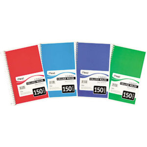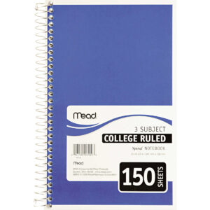 Mead 3-Subject Spiral Notebook, College Ruled, Assorted Colors, 9-1/2″ x 6″, 150 Sheets
