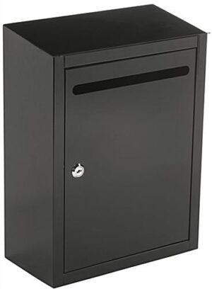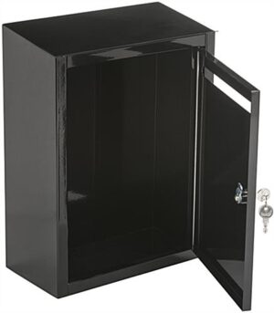 Gain security and peace of mind with the black suggestion lockbox complete with a front hinged door with key locking entry. Included installation hardware allows these ballot boxes to be easily mount to the wall or alternatively placed on countertops. The powder coat finish gives the steel lockbox a modern look that is durable and will last for years to come. Use the locking ballot boxes for charity functions, donations, churches, and more special events. Access and tabulate suggestions through the front loading hinged door with the included set of security keys. The lockbox is perfect for use in an office, retail store, or school environment.