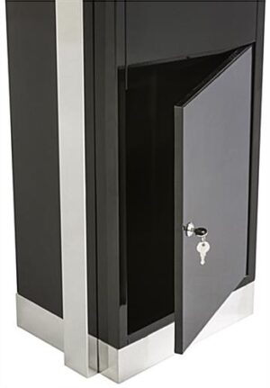 This employee suggestion box is great for collecting bright ideas and constructive criticism from staff or customers at your business. Suitable for any environment, the black finish and shiny silver top make the floor standing design blend in well with a multitude of surroundings. Use the steel suggestion box in your business to allow staff to contribute thoughts, feelings, and bright ideas. Gathering constructive feedback can be a very effective and efficient way of developing your company. Alternatively, utilize the metal container as a collector for cash, registrations, and contest entries. When the donation bin is full, open the lock with the included key and gather the entries for surveying. Each suggestion box has a locking front door to keep all feedback and contents safe and secure.