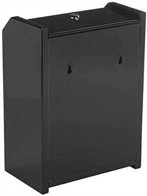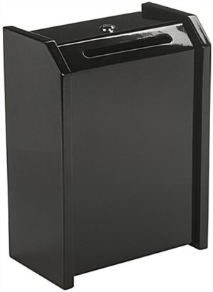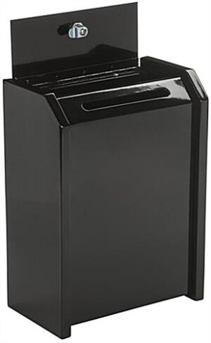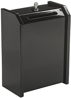 Ensure all your donations, suggestions, and other items are protected from prying eyes and tampering hands with this black top locking safe box. Each container has an angled loading design so that customer comments can easily be inserted in the designated entry slot. Equipped with a set of two keys, the black safe box has a secure lock made from steel. Use the container at church functions, school events, and business offices to gather information or suggestions. Invest in a quality item as each collection bin is crafted from steel and will last for years to come. Use a safe box with secure lock to collect customer and employee feedback in a professional manner!