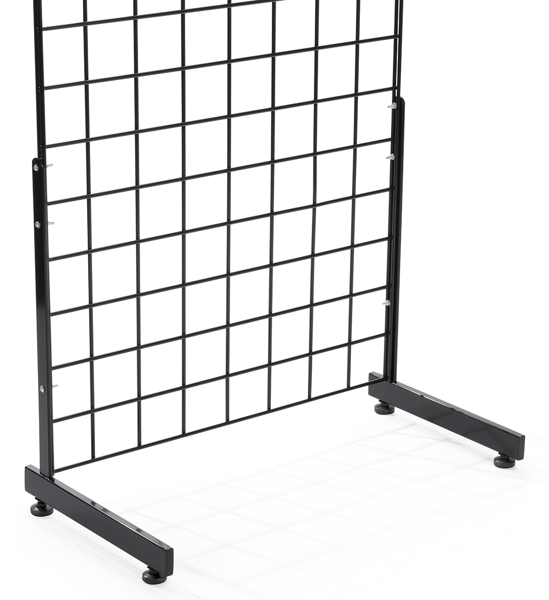 Attach a wire panel (sold separately) to this black āLā shaped gridwall base for a floor standing display. Four adjustable levelers help ensure the store fixture is stable and even. Each metal āLā shaped gridwall base consists of two legs for a complete retail solution.