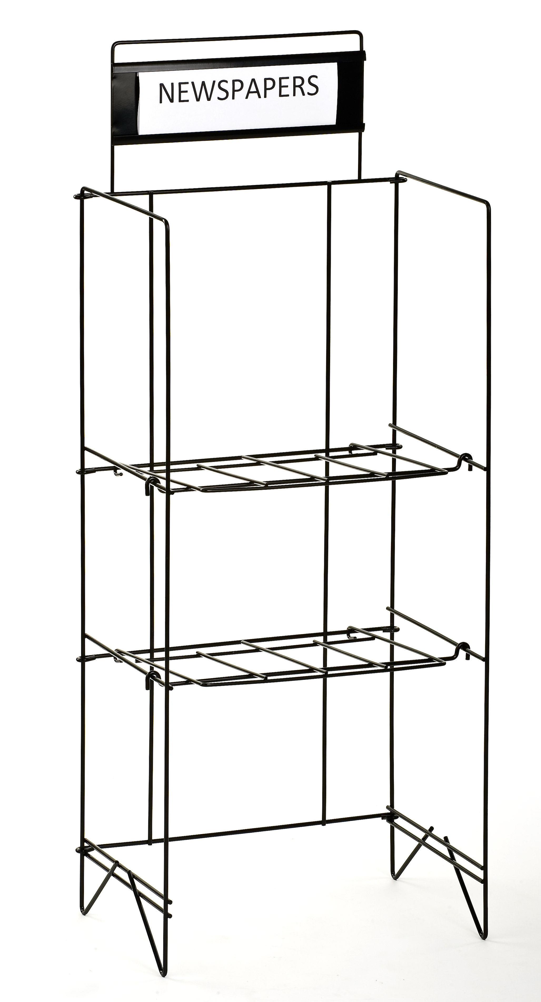 2-Tiered Wire Newspaper Rack for Floor, with Separate Header – Black