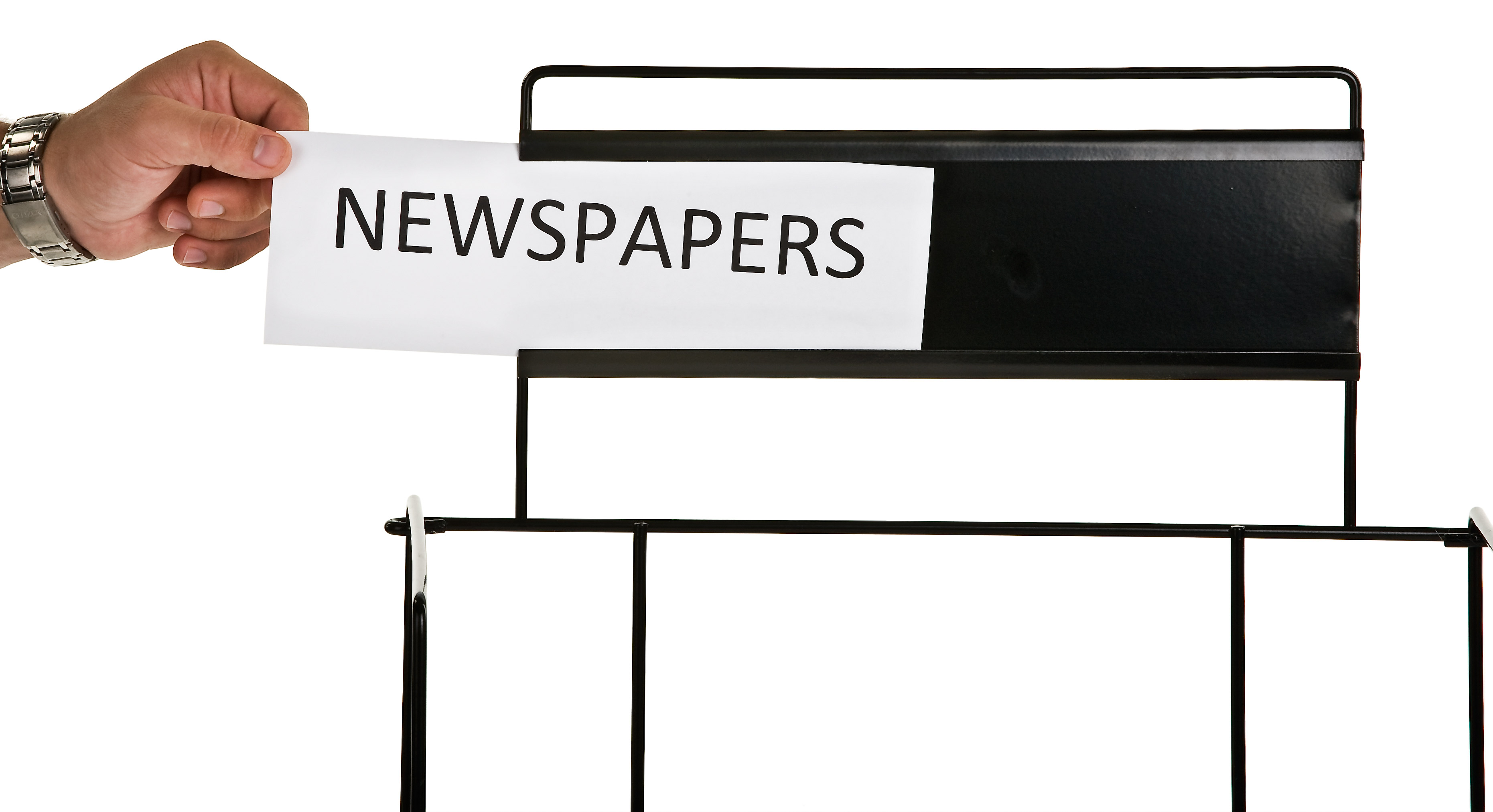 - Four shelves stack and a hold a large quantity of newspapers.