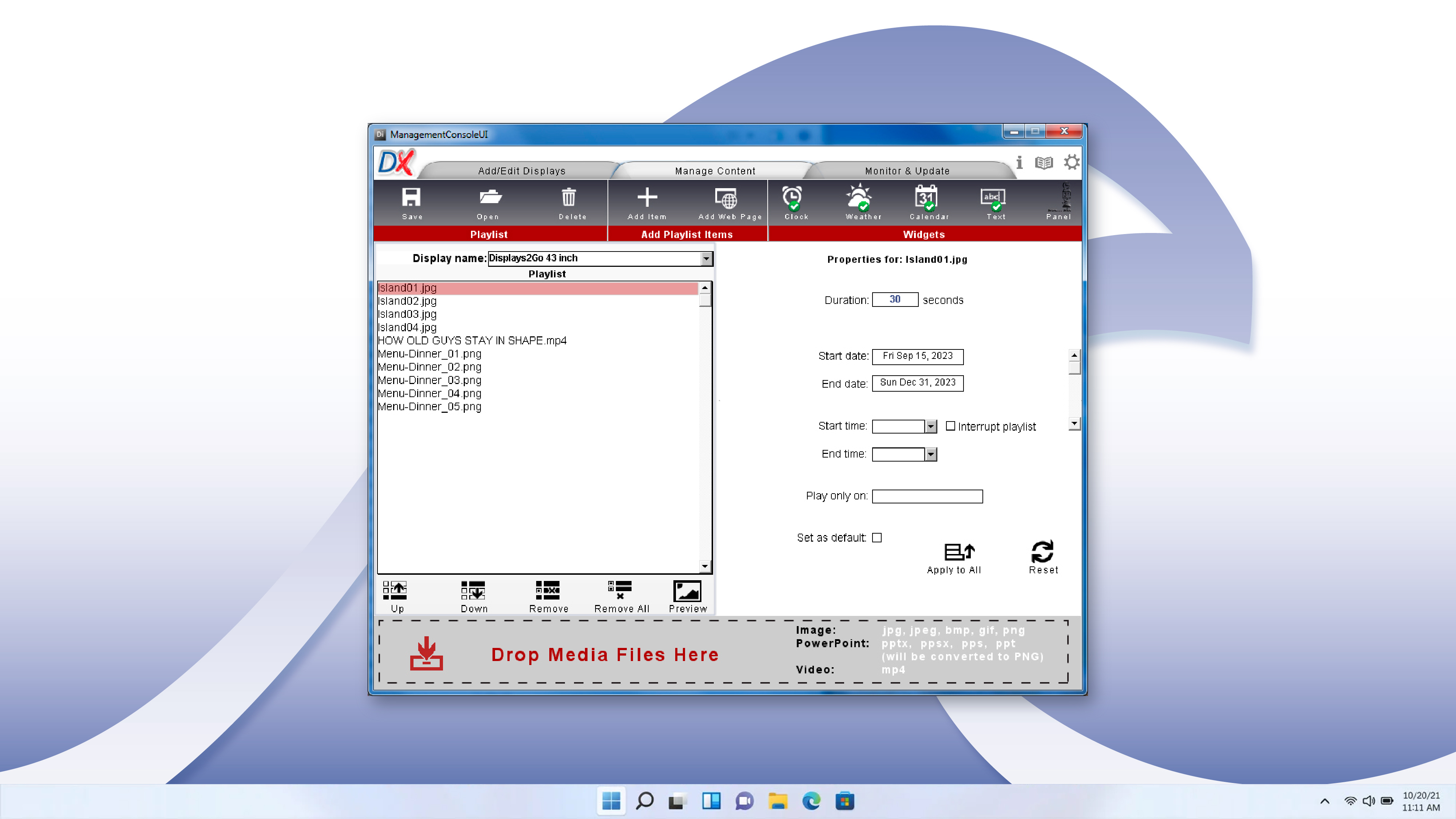 Revolutionize your content with our digital signage content management software, DisplayIt!Xpress, the ultimate bundle for effortless content management. Seamlessly connect and control your Windows or Android-powered displays via Wi-Fi. With no recurring fees, DisplayIt!Xpress can remotely manage devices, select media, and monitor campaigns with ease. Enjoy lifetime support and a user-friendly experience with a simple drag-and-drop interface. This unit can also double as a full-functioning Windows media player when the DisplayIt!Xpress software isn’t in use. Say goodbye to inconvenient updates with wireless connectivity. Showcase your multimedia and customize presentations with weather widgets, clocks, and calendar displays. With DisplayIt!Xpress, you can easily schedule and customize your content to suit your business’s specific needs. From advertising promotions and product showcases to digital menus and corporate announcements, DisplayIt!Xpress offers versatile functionality to accommodate a wide range of use cases. With a convenient plug-and-play installation and small form factor design, DisplayIt!Xpress has never been easier to set up on your digital device. Perfect for businesses seeking to enhance their advertising, marketing, and informational displays, DisplayIt!Xpress digital signage content management software is your ticket to unlocking endless possibilities in engaging and captivating your audience.